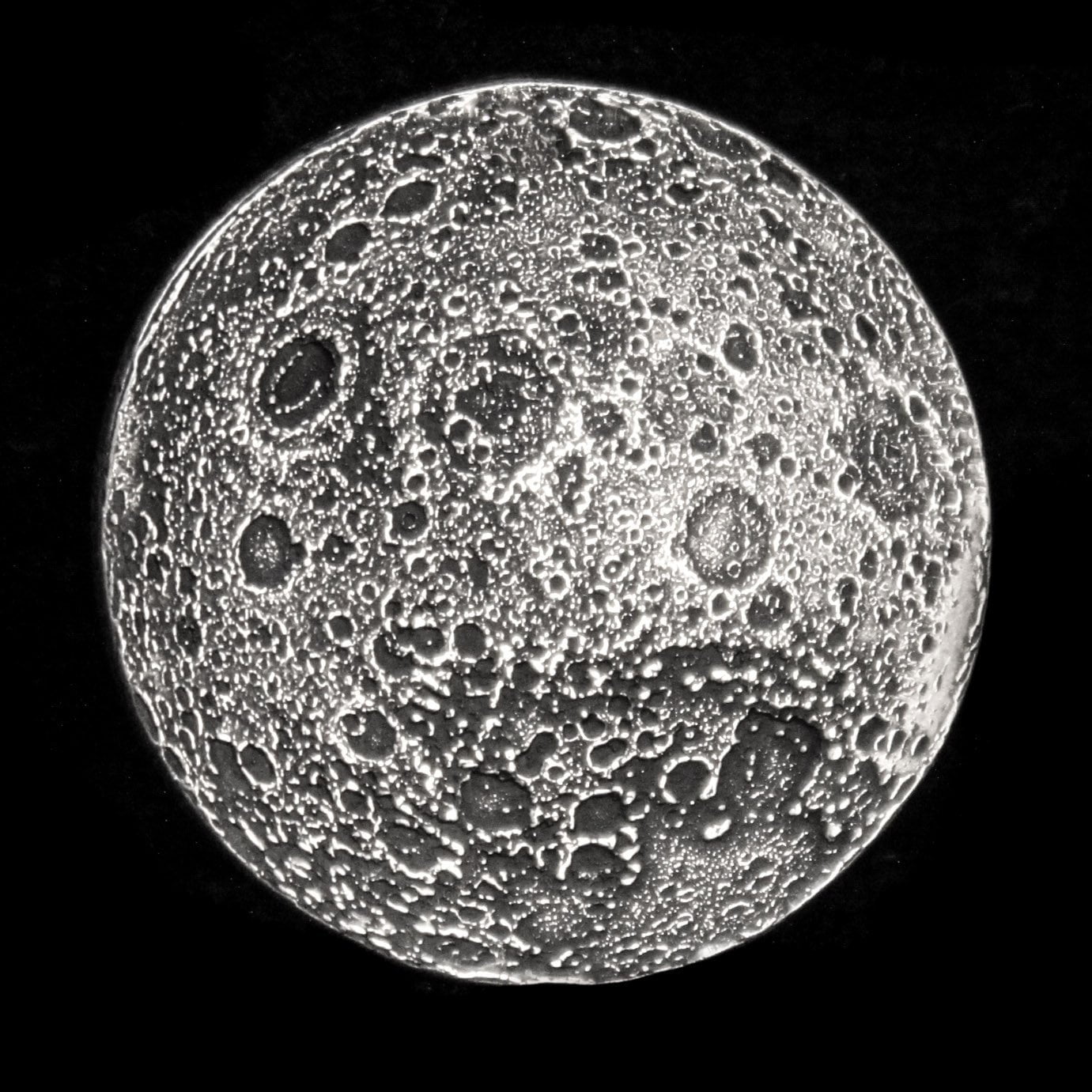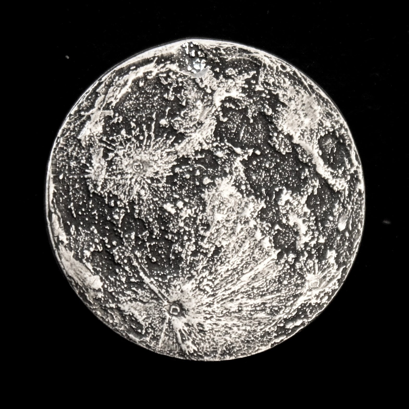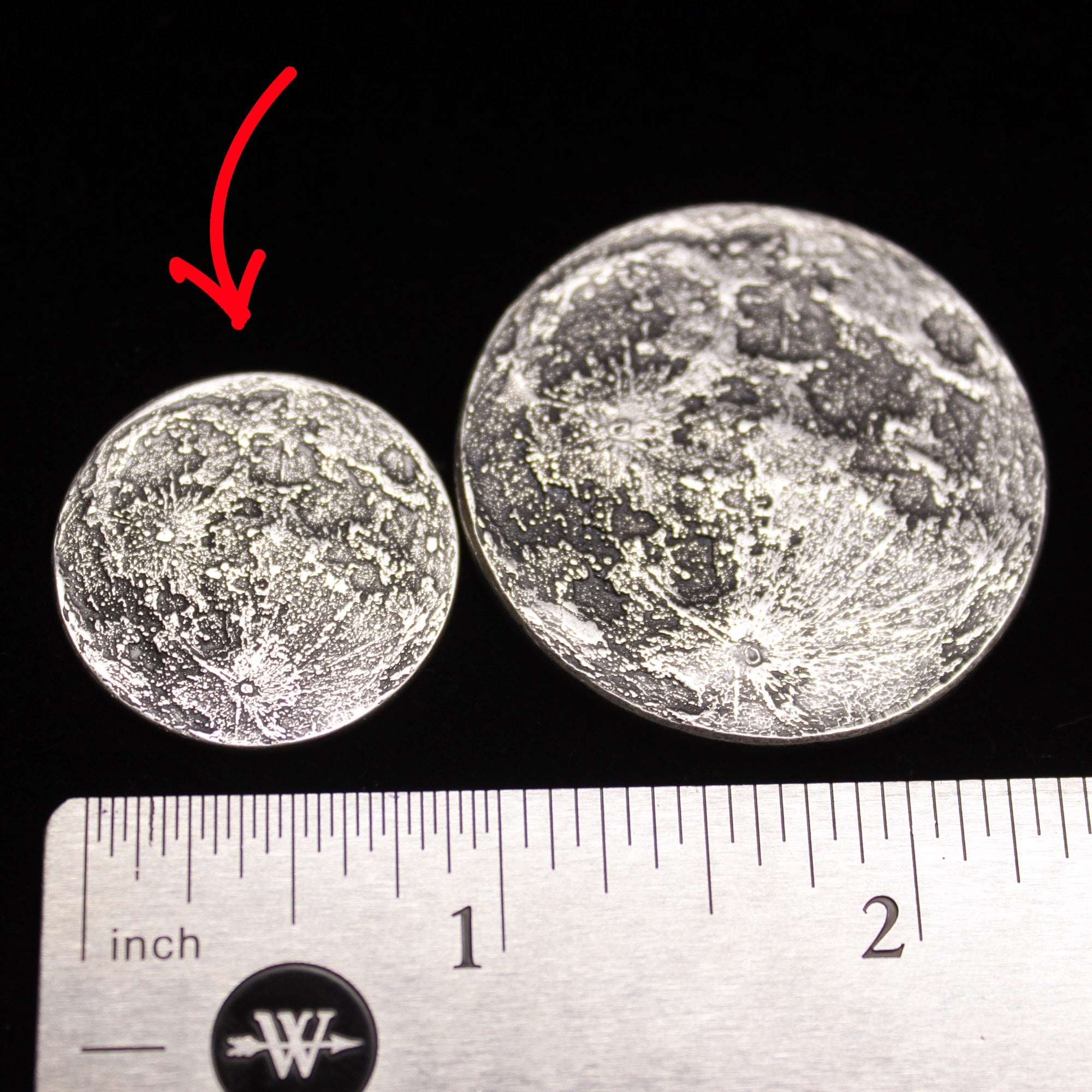 This coin of Earth's Moon features a geographically (technically it's selenographically) correct 136,794,240:1 scale design of the surface texture of both its near and far side. A great worry coin, gift, or reminder coin.