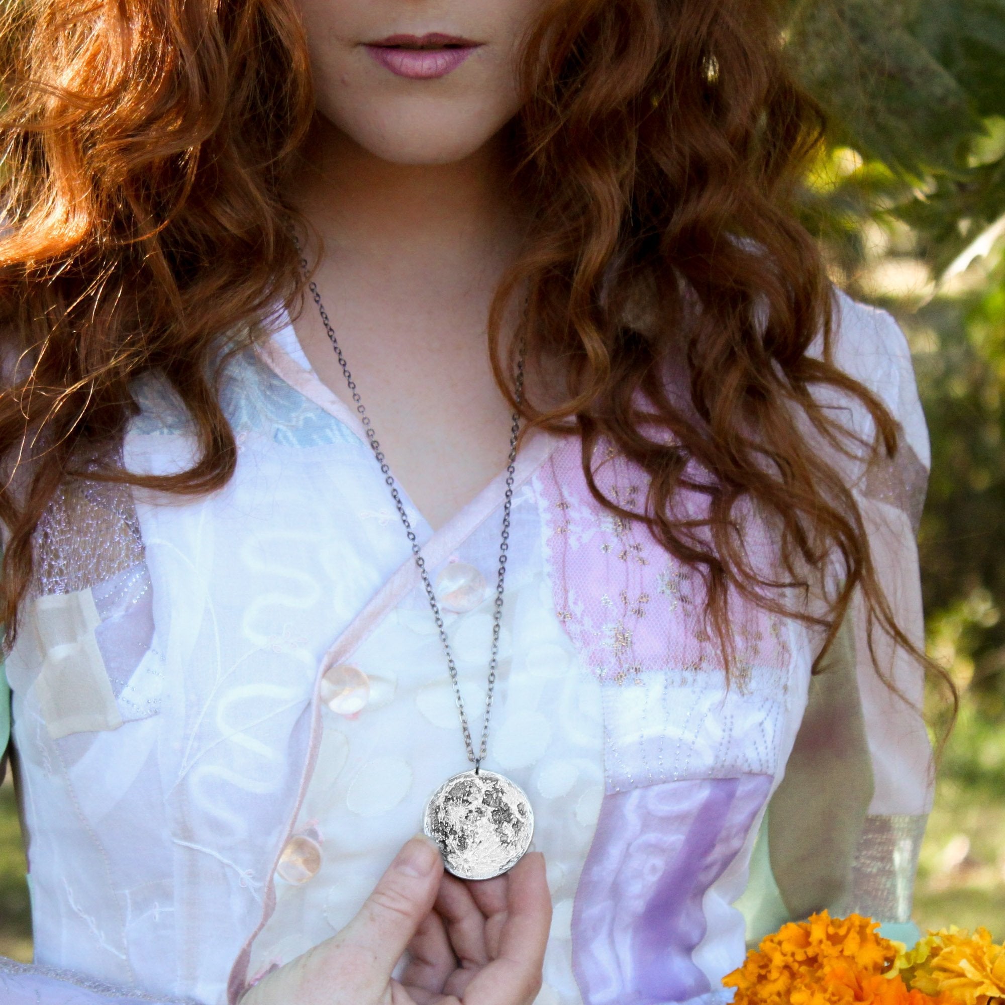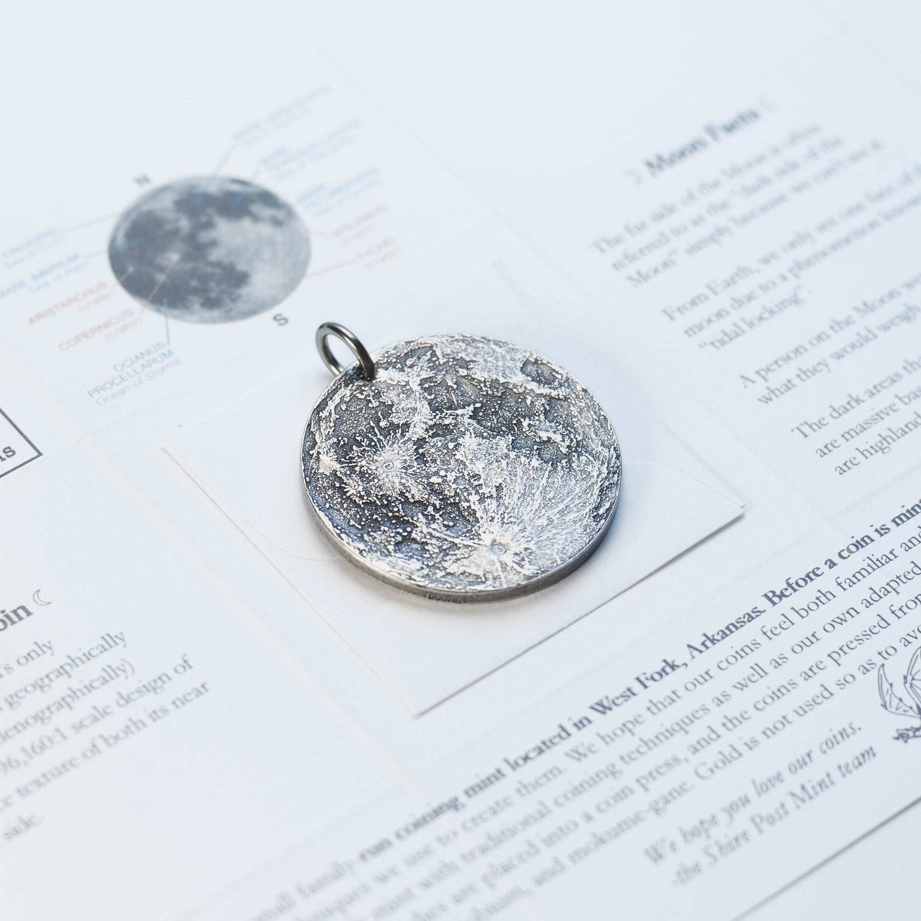 Silver Supermoon Necklace or Charm - Large 1.5 inches / 38 mm