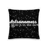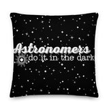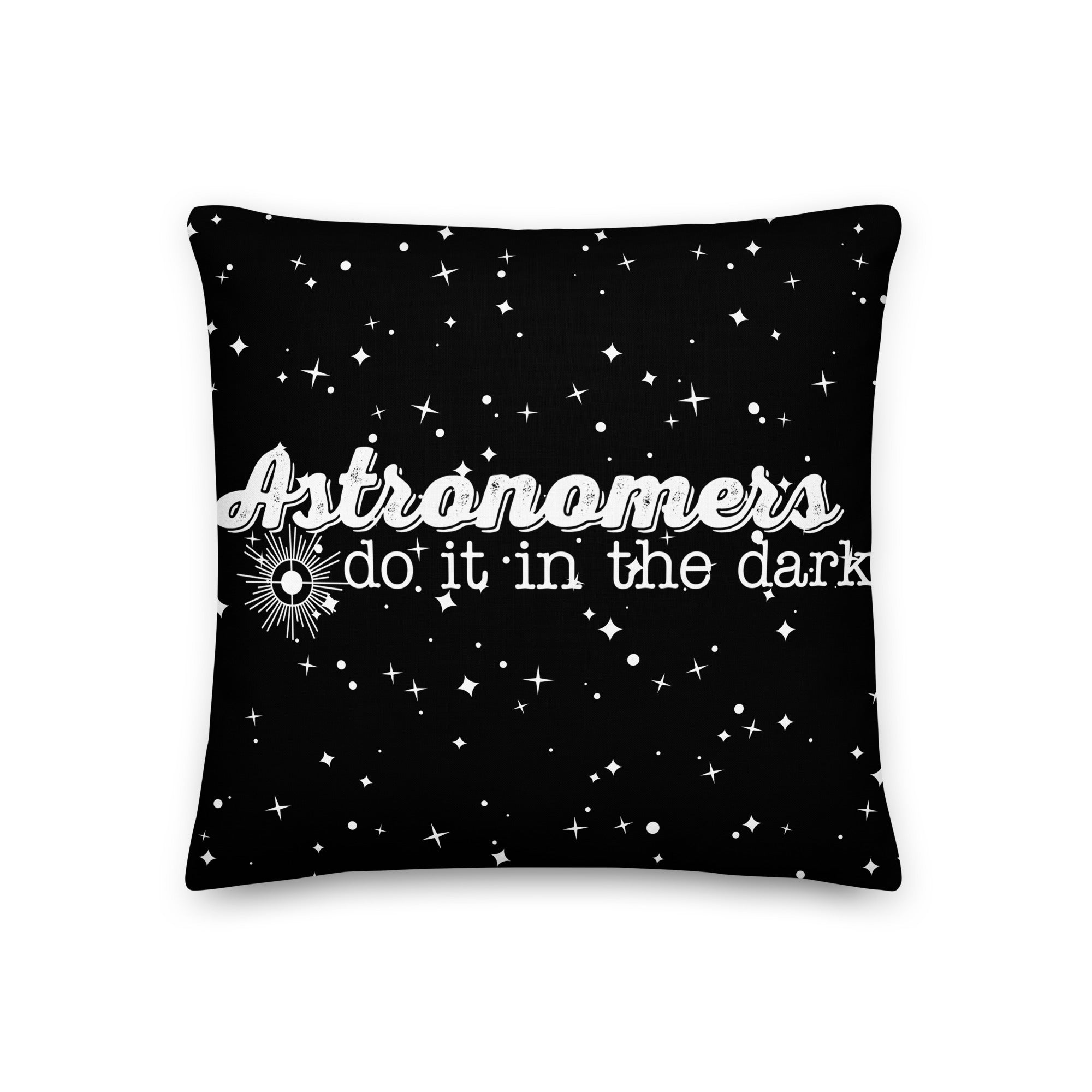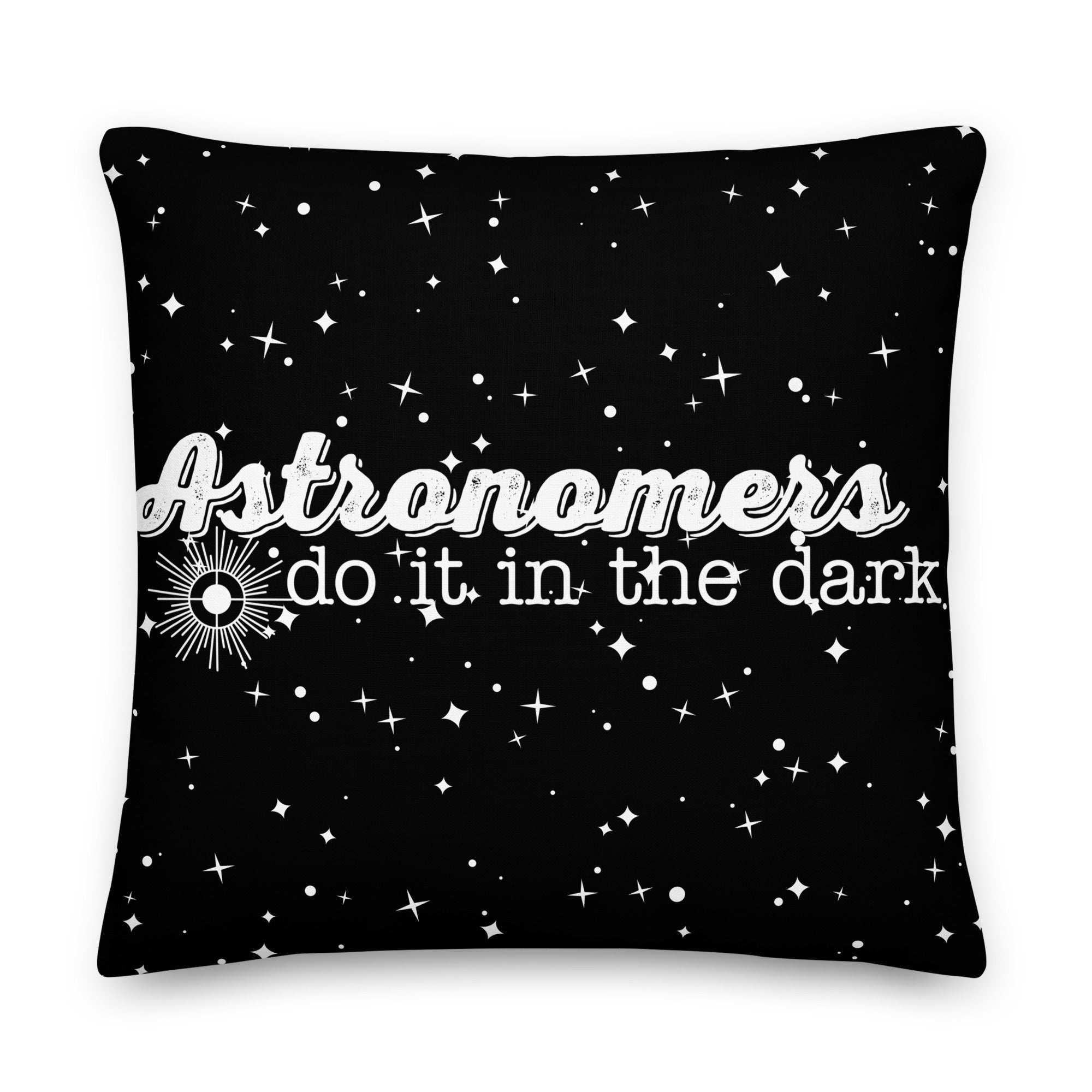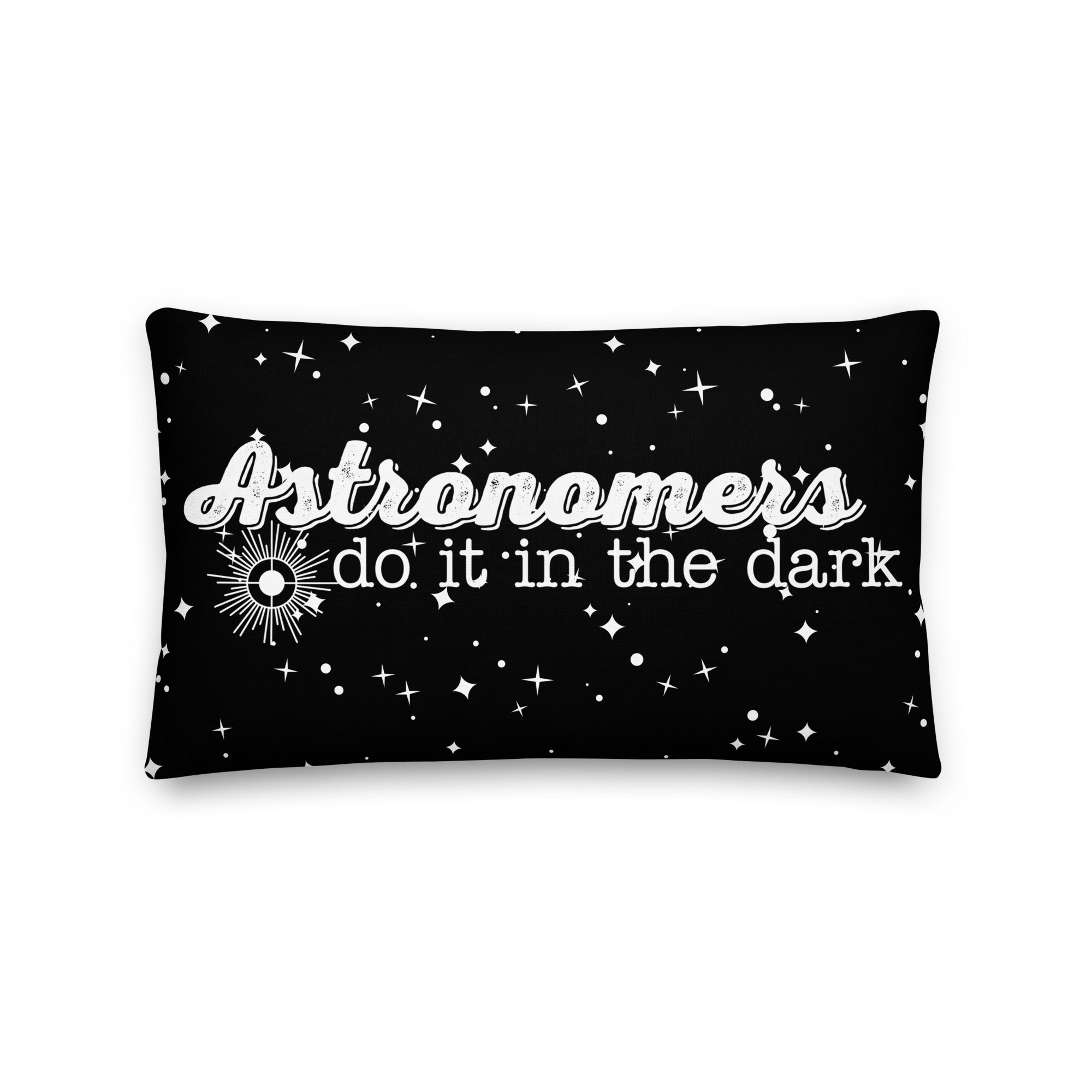 Cozy up with a cosmic sense of humor—this pillow proudly declares "Astronomers do it in the dark." A playful nod to late-night stargazing, it's the perfect accent for any space-loving sleeper or telescope-toting dreamer.