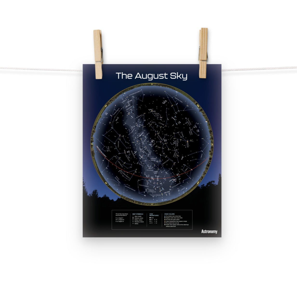 This map portrays the sky as seen near 35° north latitude during the month of August.