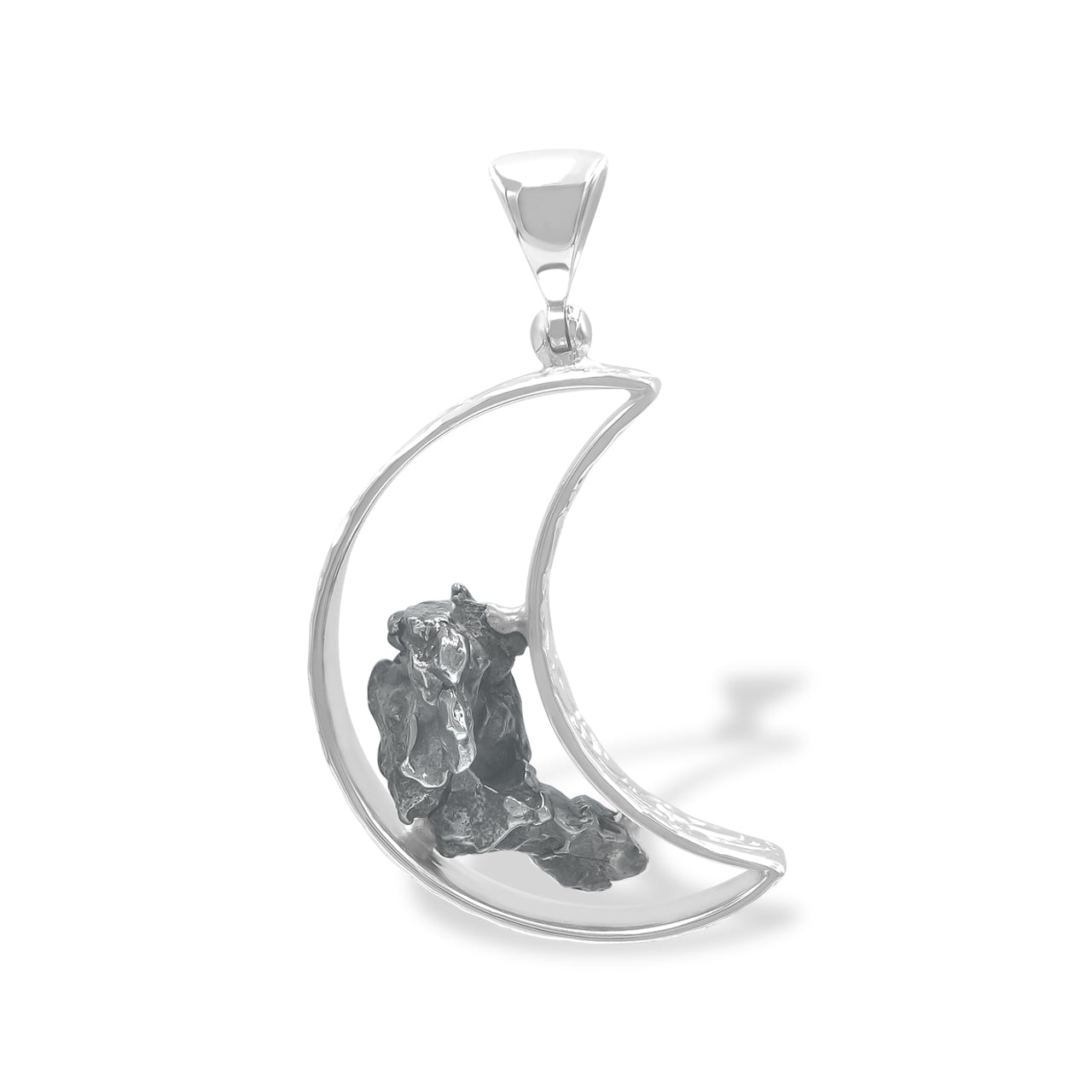 Campo del Cielo Meteorite Crescent Moon Pendant in Sterling Silver