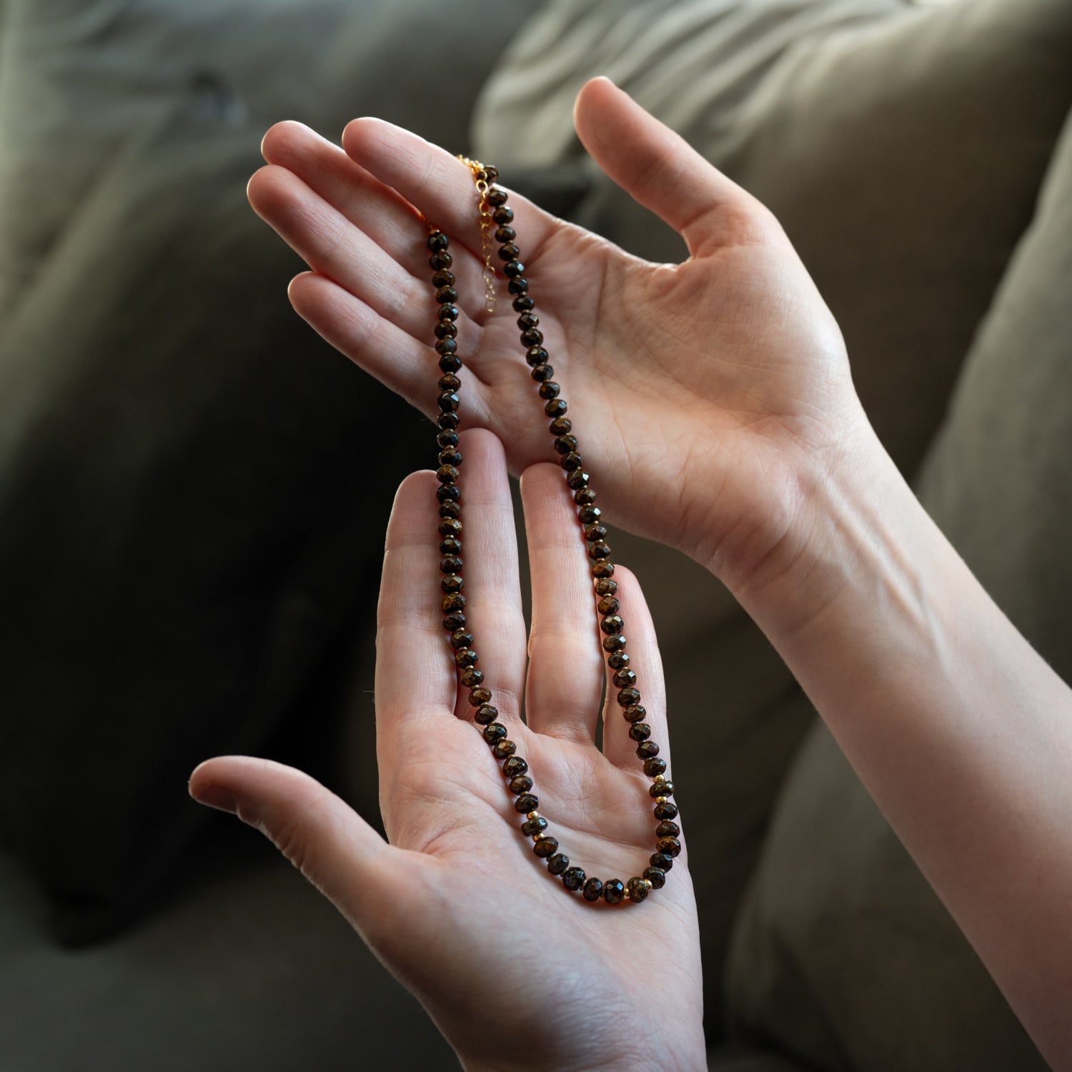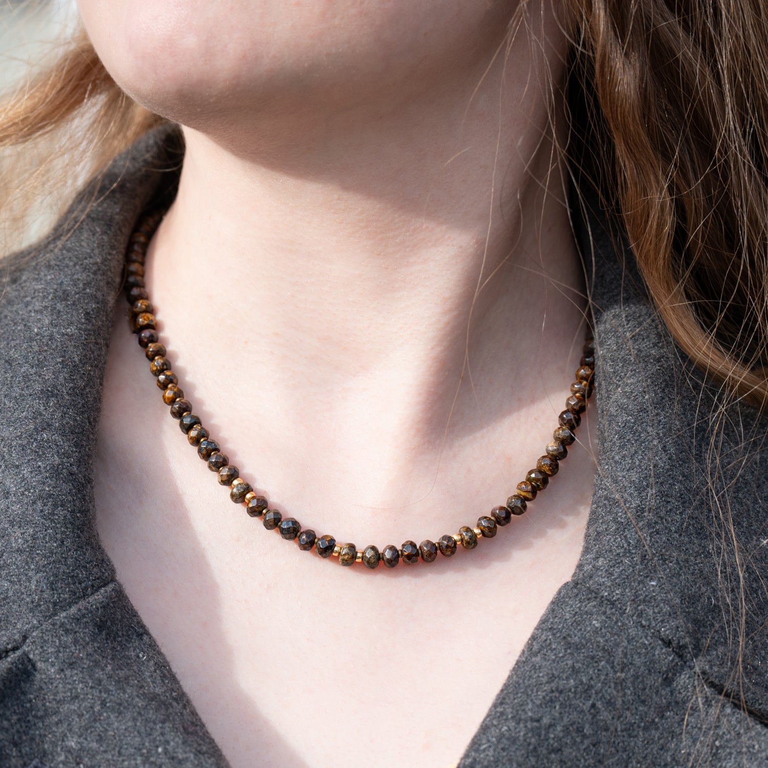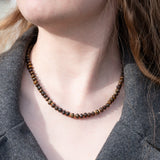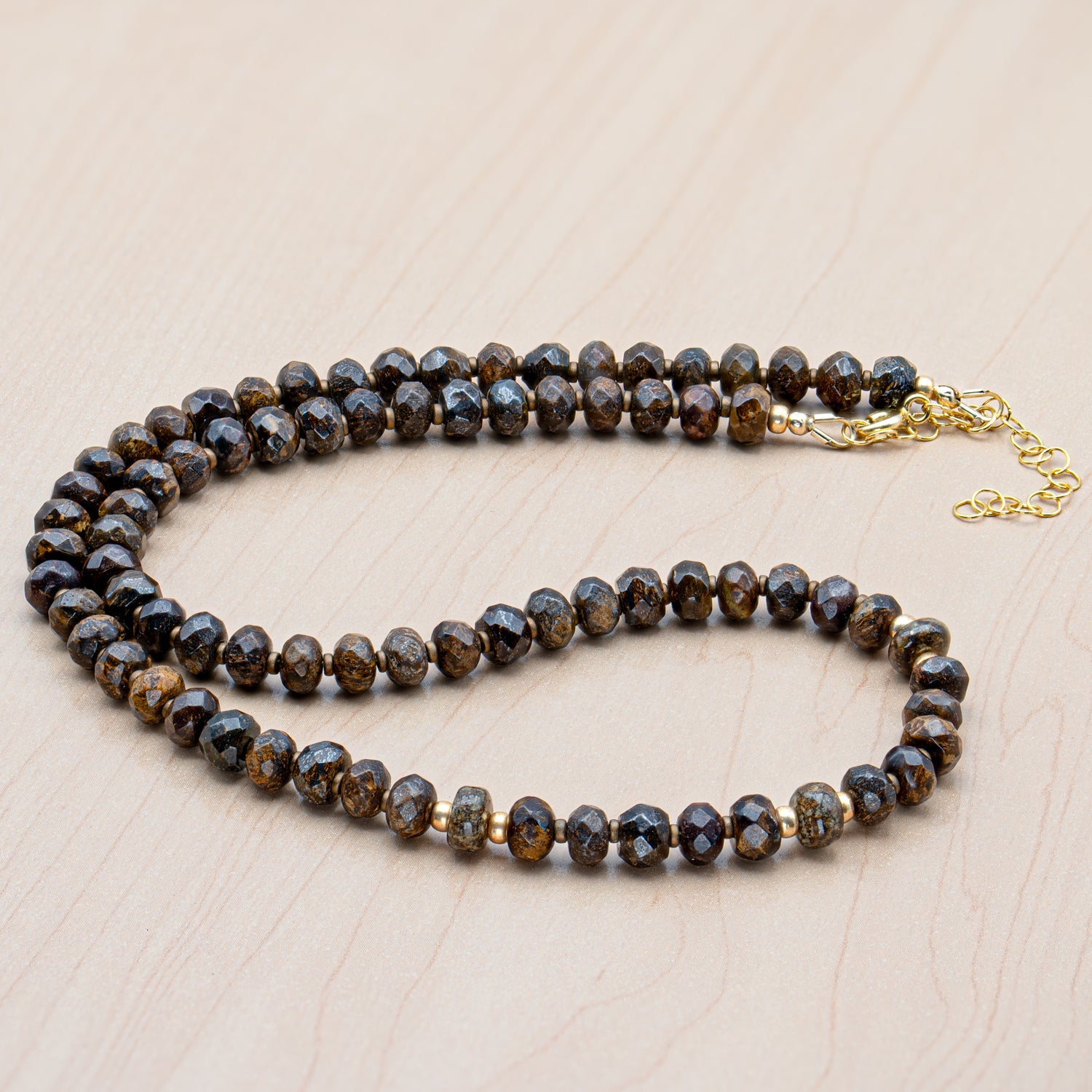 This necklace, made right at Mini Museum contains three meteorite beads made with material from Chondritic Meteorite NWA 869, an ancient meteorite that dates back over 4,500,000,000 years.