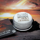 The specimens are housed in an acrylic jar that is encased within a glass-topped riker display box. The box measures 4 1/2" x 3 1/2". A small information card is also included, which serves as the certificate of authenticity.