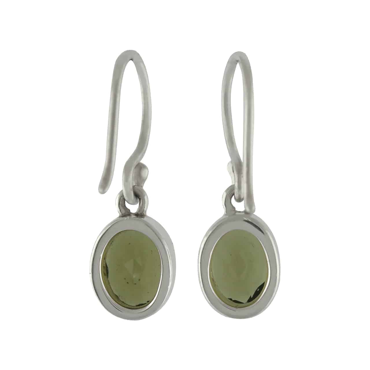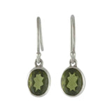Faceted Oval Moldavite Earrings in Sterling Silver