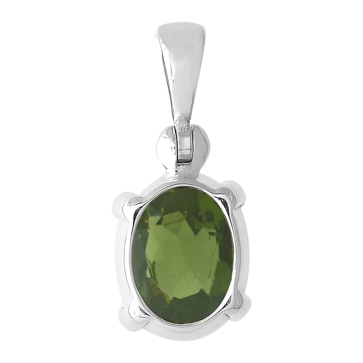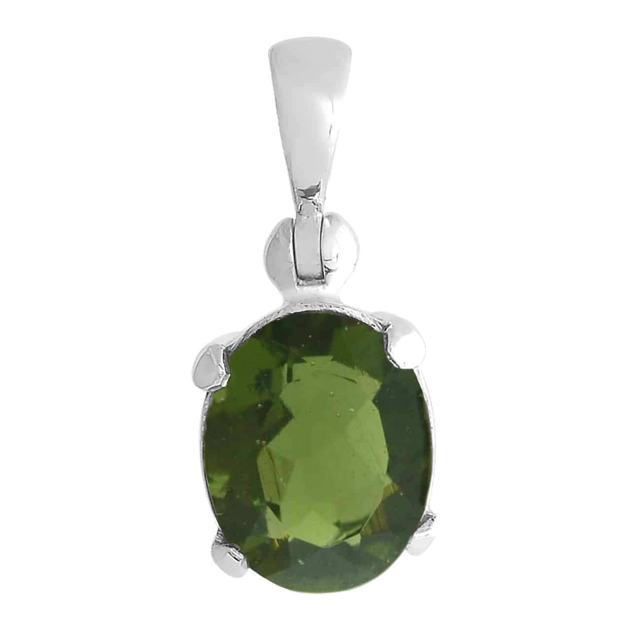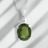 - Handcrafted in fine Sterling Silver, this pendant features a stunning 10x8 mm oval-cut faceted Moldavite, weighing approximately 2 carats. Measuring 0.8 inches long with the bale, it’s a perfect fusion of elegance and rarity.