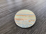 The might and majesty of our largest planet, a gas giant, in the solar system is brought to you with this 2" hard enamel pin; Jupiter! The planet image shows the iconic giant red spot, an anticyclonic storm that has been continuously observed since 1878, but has probably been persistent for hundreds of years, if not even longer! The 5th planet from the sun, the biggest in the solar system and quite possibly one of the key building blocks that allowed the safe formation of the Earth and life as we know it!