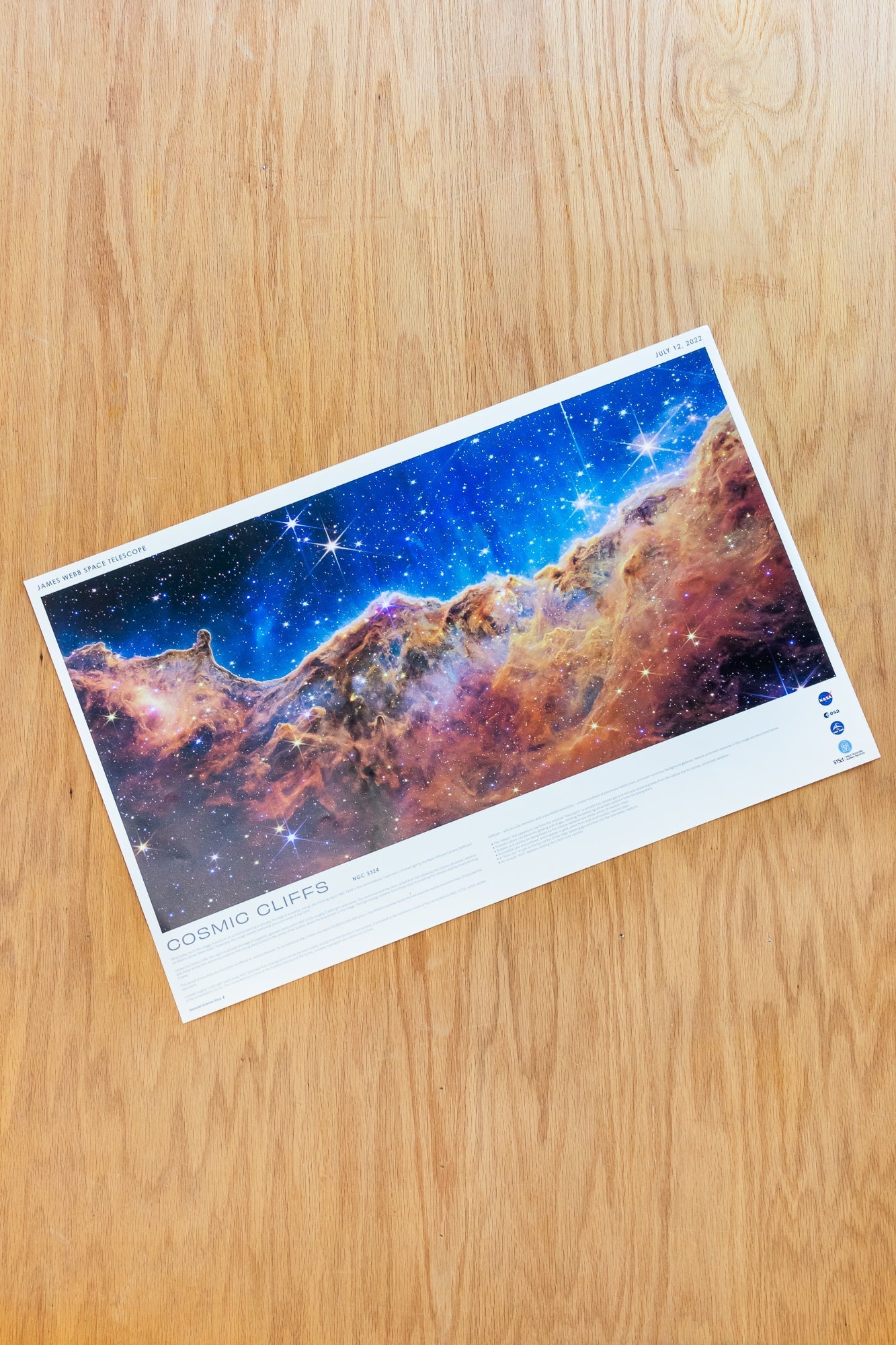 We present this high quality print of perhaps the most popular of the first images released from the James Webb Space Telescope: The Cosmic Cliffs of The Carina Nebula.