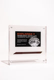 This strip of magnetic tape includes a portion of raw telemetry data for the Explorer 7 satellite. This listing is for a section of tape in an acrylic case that was cut from a larger spool recorded in October 1959.