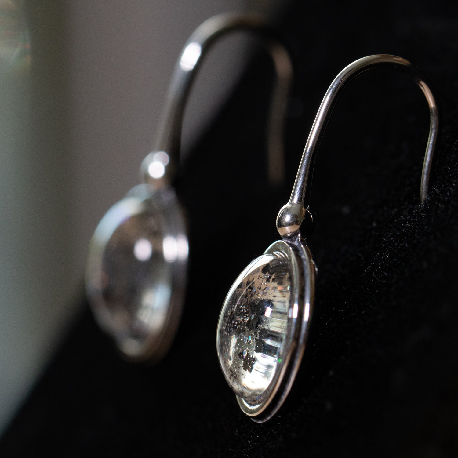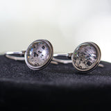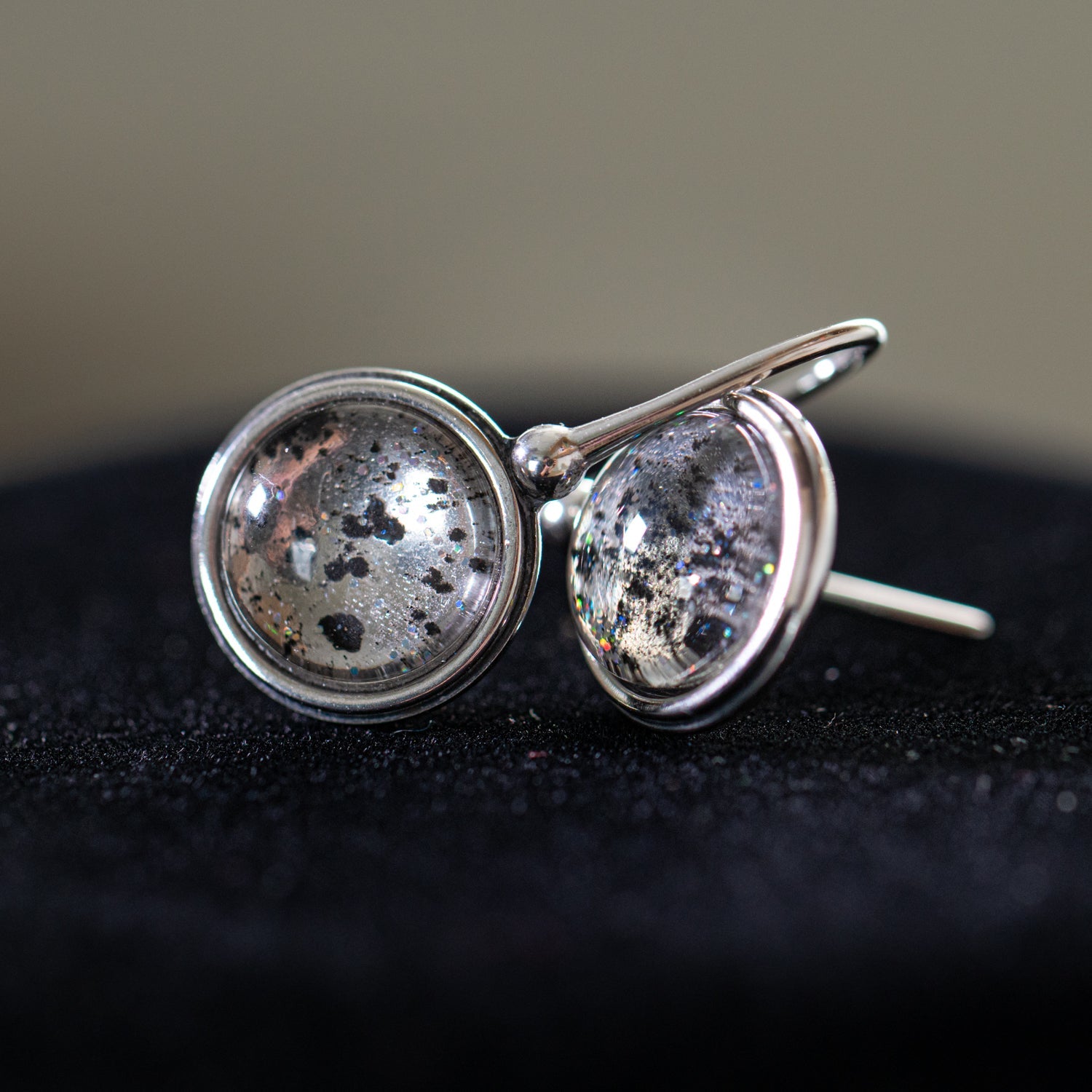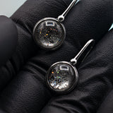 This exclusive item is crafted at the Mini Museum workshop with a crystal-clear glass top and sterling silver setting. It's an incredible pair of astronomic jewelry made with rare and ancient meteoritic material!