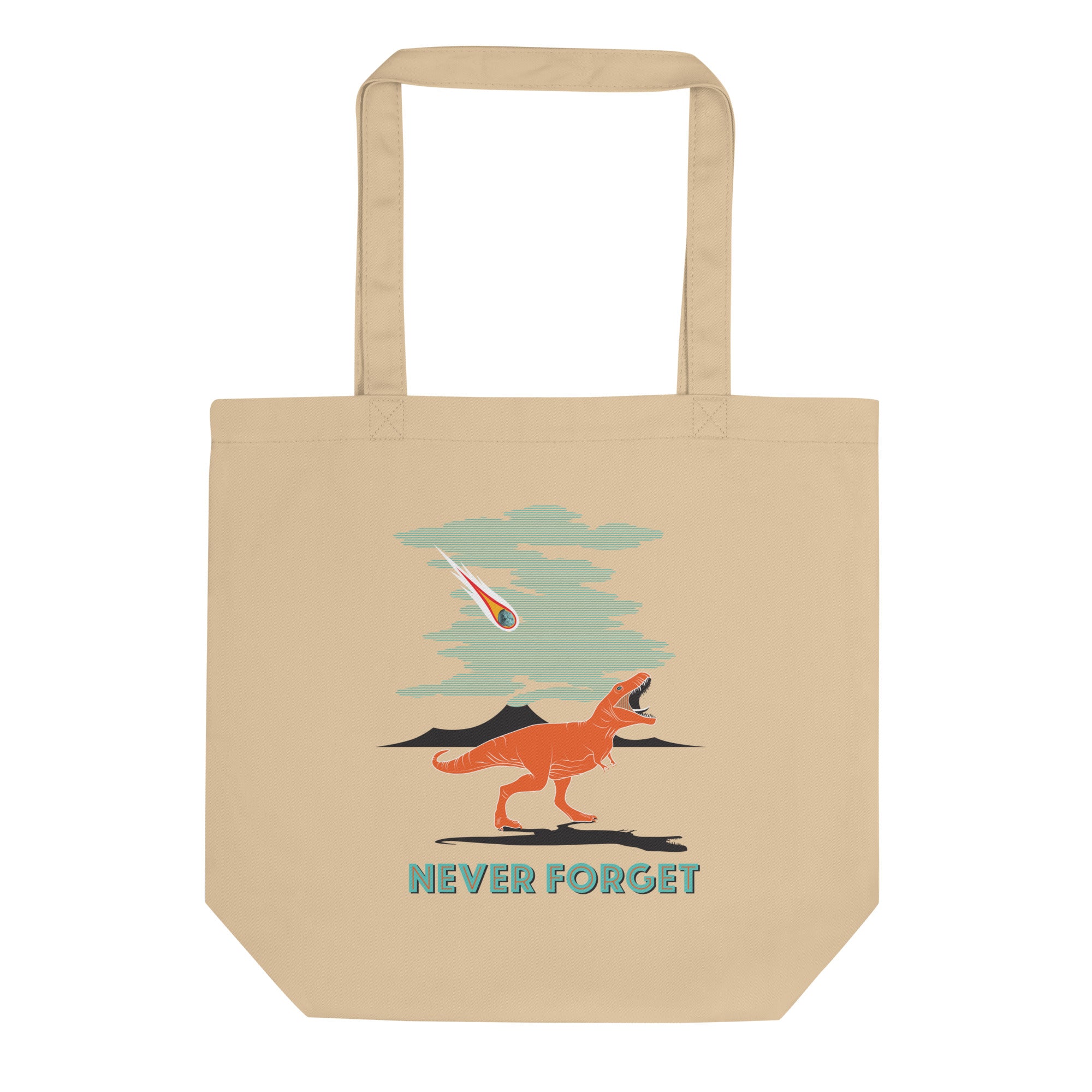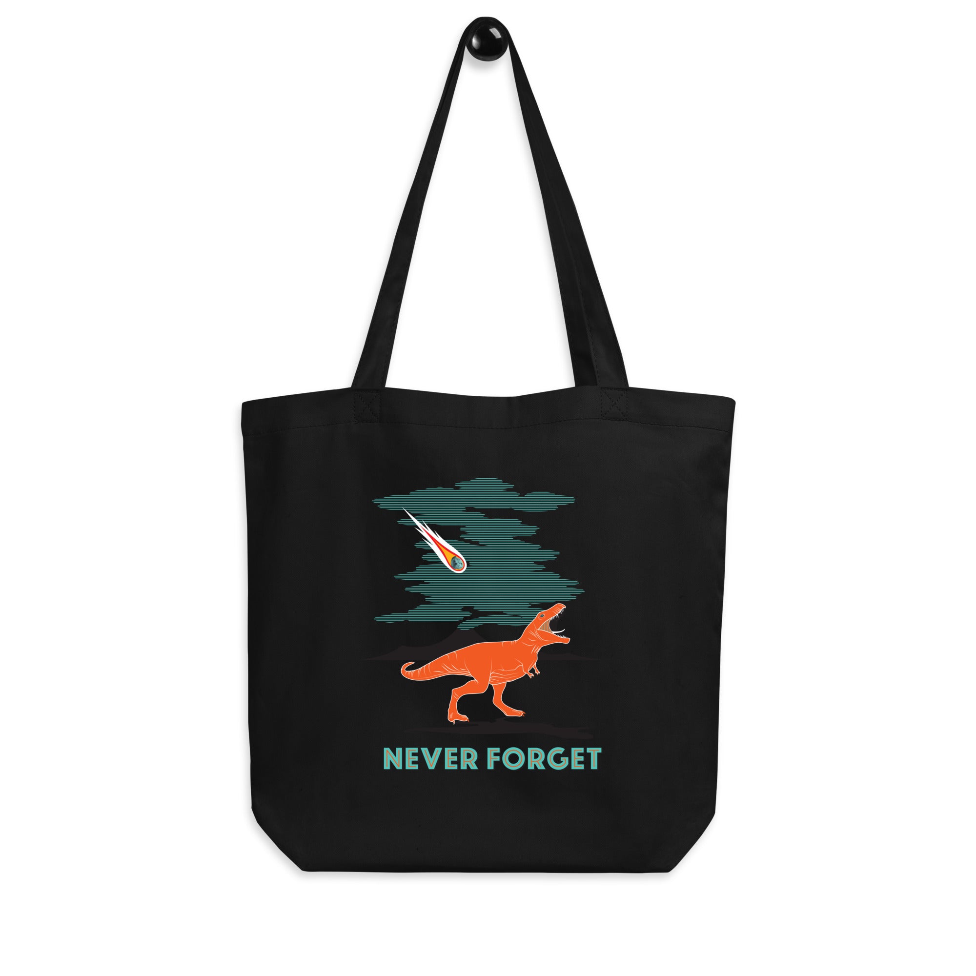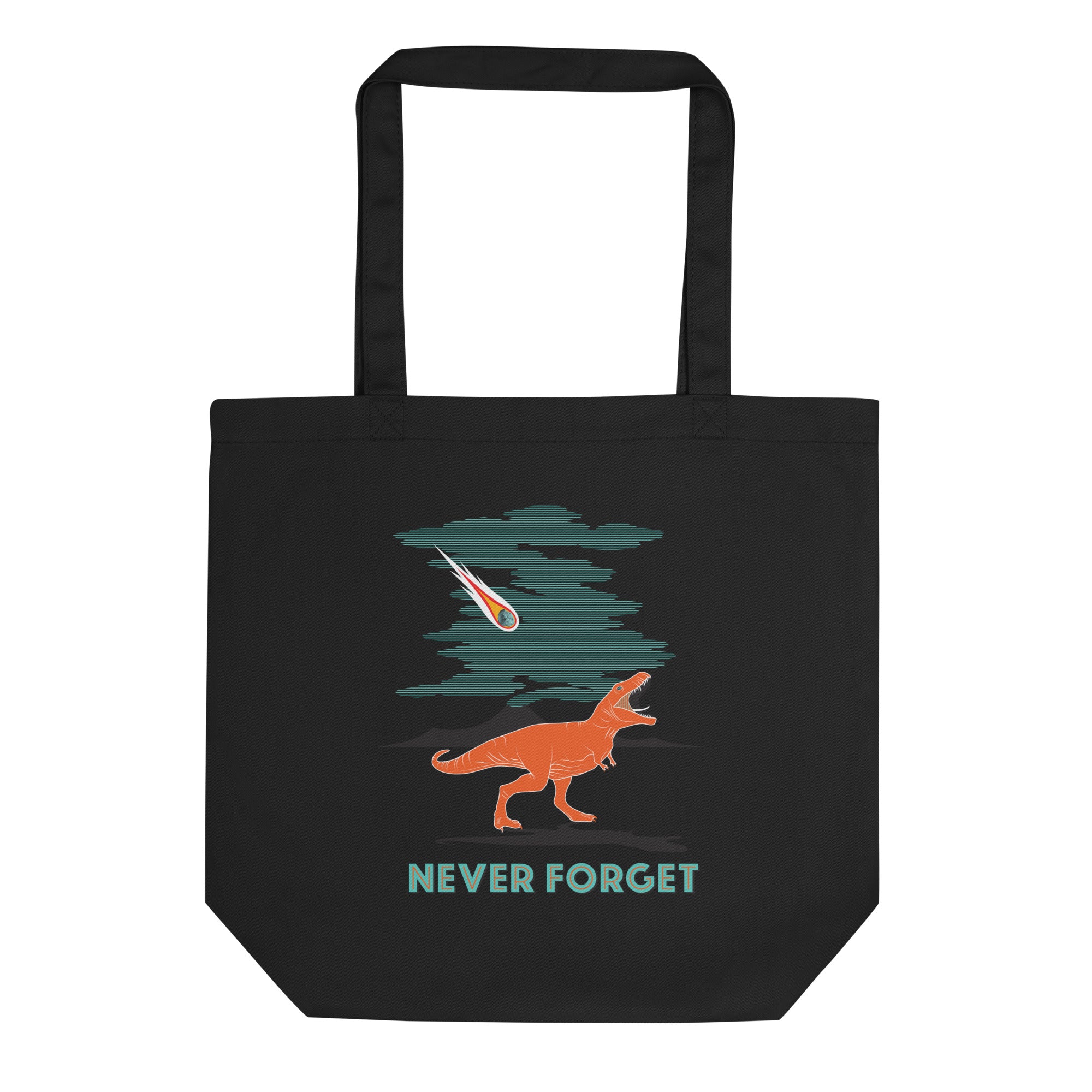 This bag features the mighty t-rex and the infamous asteroid in vibrant colors. You'll never forget what happened to the dinosaurs with this essential tote.