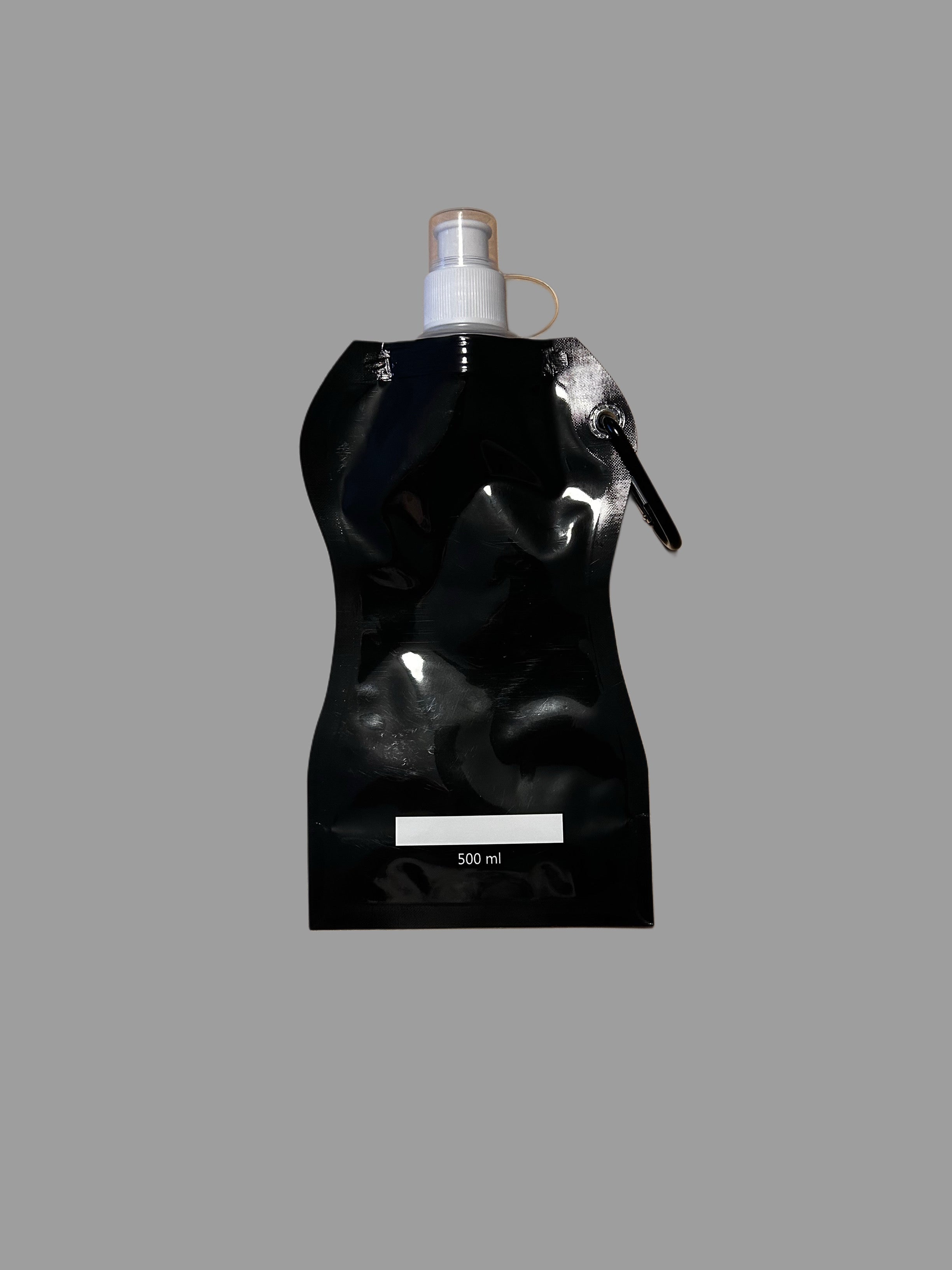 500 ml Capacity flexible design—rolls up when empty, stands tall when full (like you)