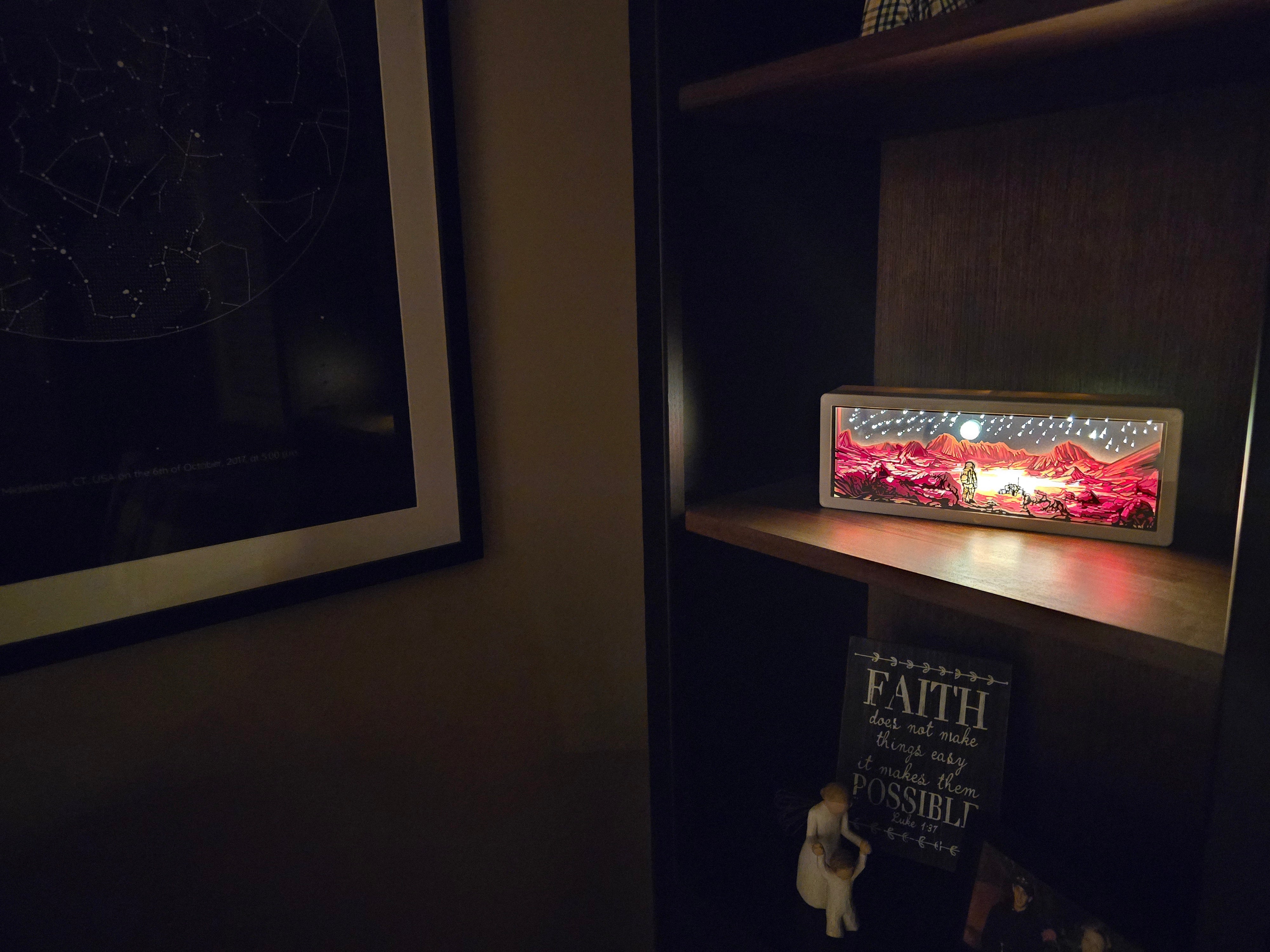 Bring a little cosmic magic to your desk, bedside, or starship cabin with the Walking on Mars 3D Paper LED Light. Using advanced laser-cutting technology, each 3D shadow lamp uses 6 layers of paper to create a glowing marvel of Martian ambiance. 5V USB or AA battery powered, and it can be connected to a laptop, mobile bank, or USB power adapter. With our exclusive art design and a soft LED glow, it’s part lighting, part spacecraft decor, all awe.